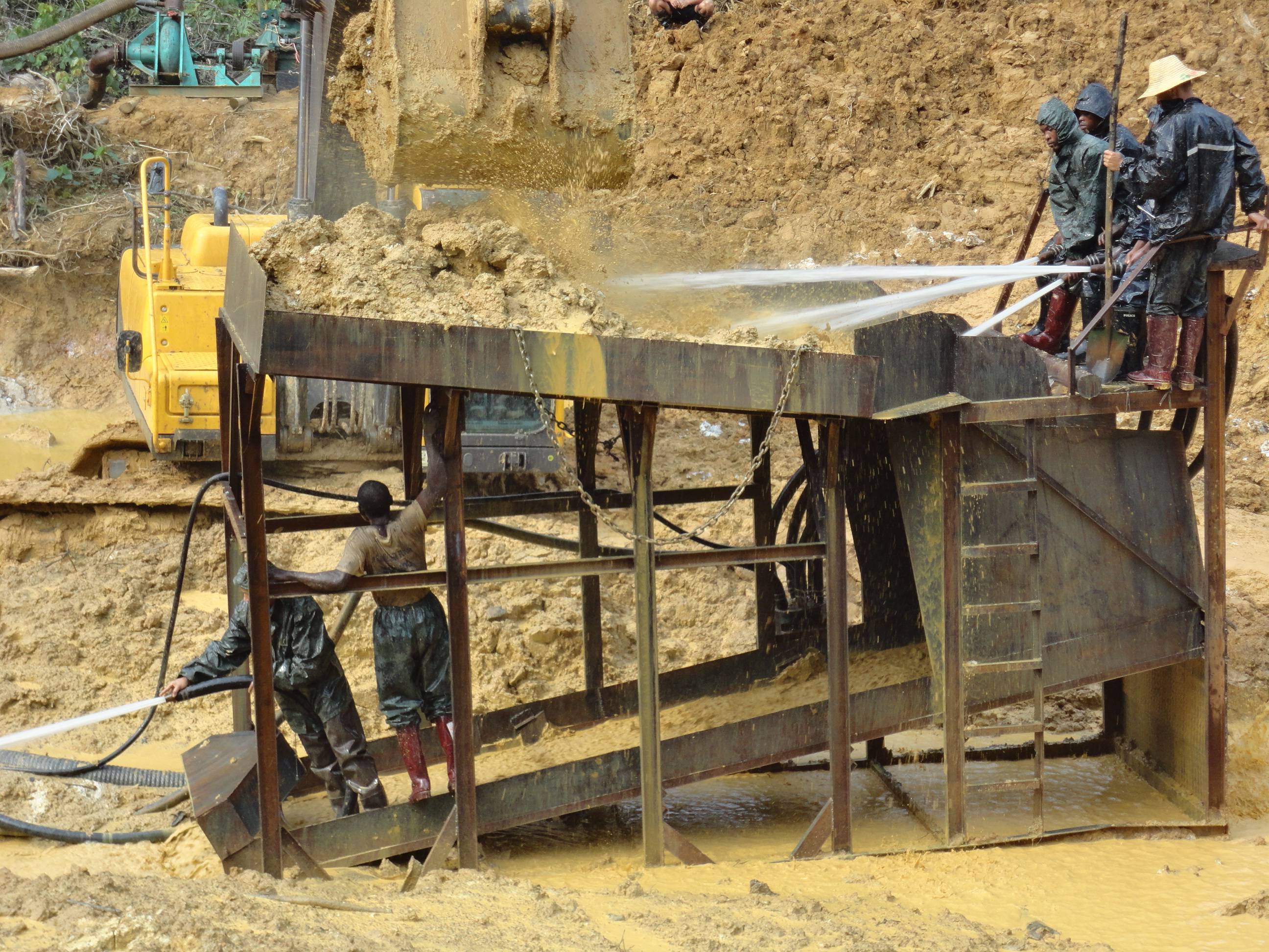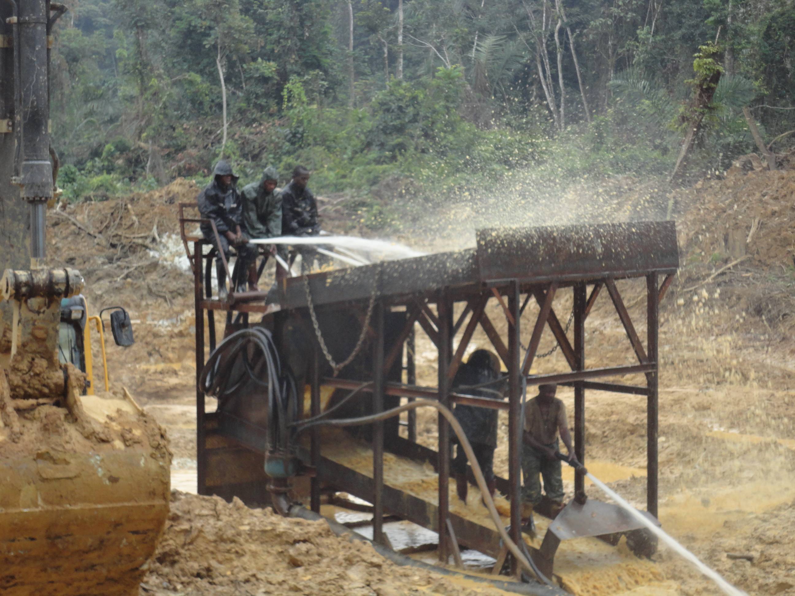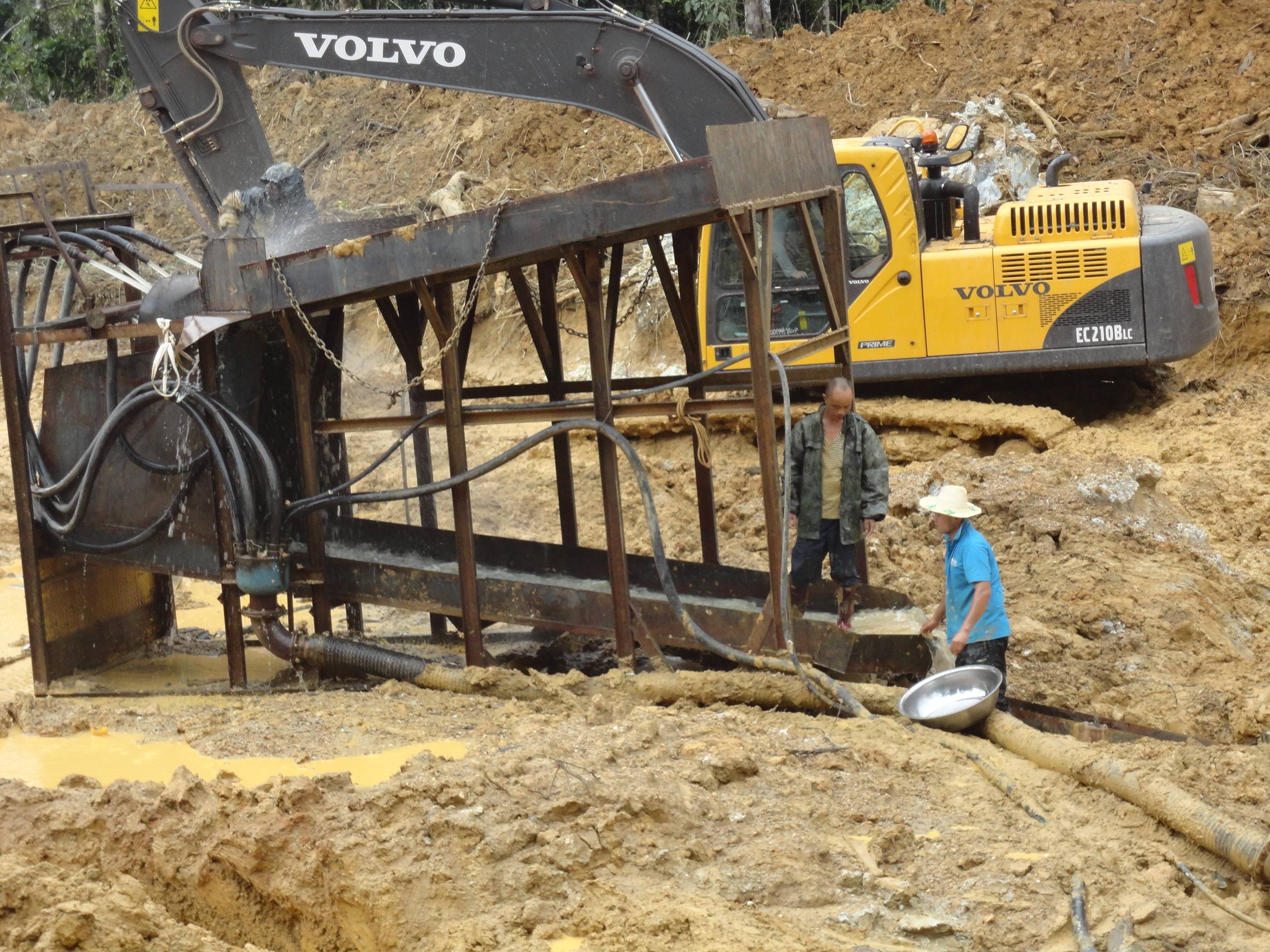 杭州的陳總在幾內(nèi)亞進(jìn)行沙金礦的開(kāi)采,使用的是原始的大溜槽,這種大溜槽產(chǎn)量小,洗礦效果不好,需要人工手持水槍沖洗,沒(méi)有絞泥的效果,另外黃金回收也是固定溜槽,回收率低,尾礦當(dāng)中還有3克含量。所以陳總直接來(lái)到魯晟機(jī)械考察移動(dòng)式新型的旱地沙金設(shè)備。這種新型的是一體式的,移動(dòng)非常方便,配套新型防盜的選金系統(tǒng),回收率高。不光能回收顆粒金,還可以回收毛細(xì)金,片金,等微粒金,目前這款設(shè)備很受客戶的歡迎。