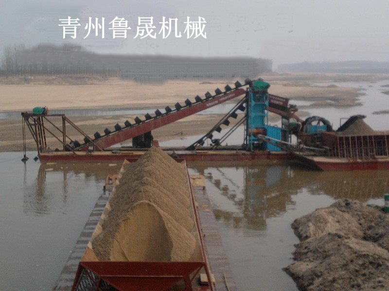 挖沙船,即采掘沙石、沙礦的船舶,一般為電動(dòng)遷移式或柴油機(jī)械動(dòng)力式。船體采用拼裝式箱型結(jié)構(gòu)。配有挖掘裝置、篩選裝置、提升裝置、傳送裝置等。通過(guò)電機(jī)驅(qū)動(dòng)挖斗上料,石塊通過(guò)篩選傳由輸送帶傳出,沙子由輸送帶或沙泵傳到地點(diǎn)。